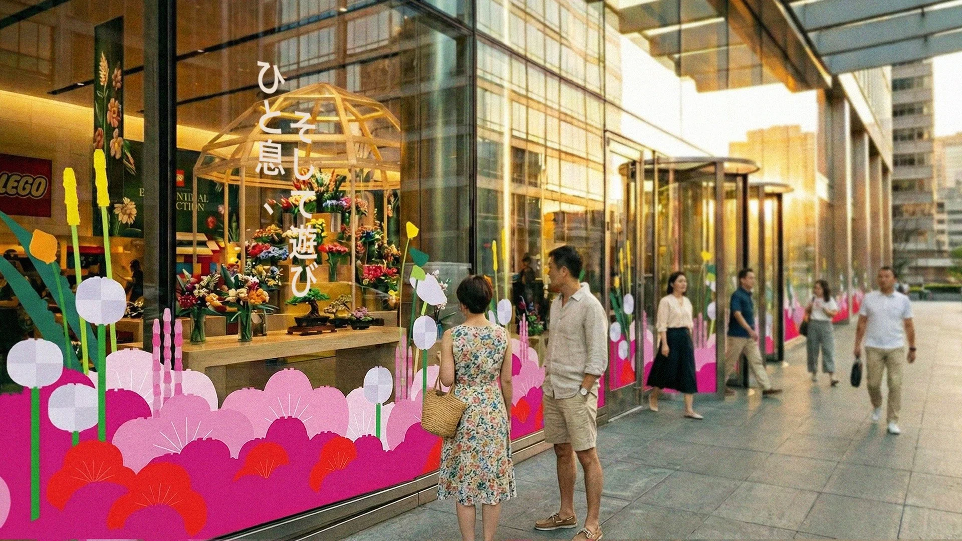 In the heat of the Japanese summer, we created a city respite with “Pause & Play” — a conceptual LEGO Botanicals experience designed to help people escape the rush outside. Visitors stepped into a cool, airy space filled with oversized blooms, gentle colours, and hands-on stations where they could slow down and build their own LEGO flowers.